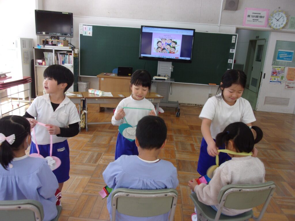 令和8年度入学予定のお子様を、現1年生が迎えて、学校の紹介やゲームで楽しみました。